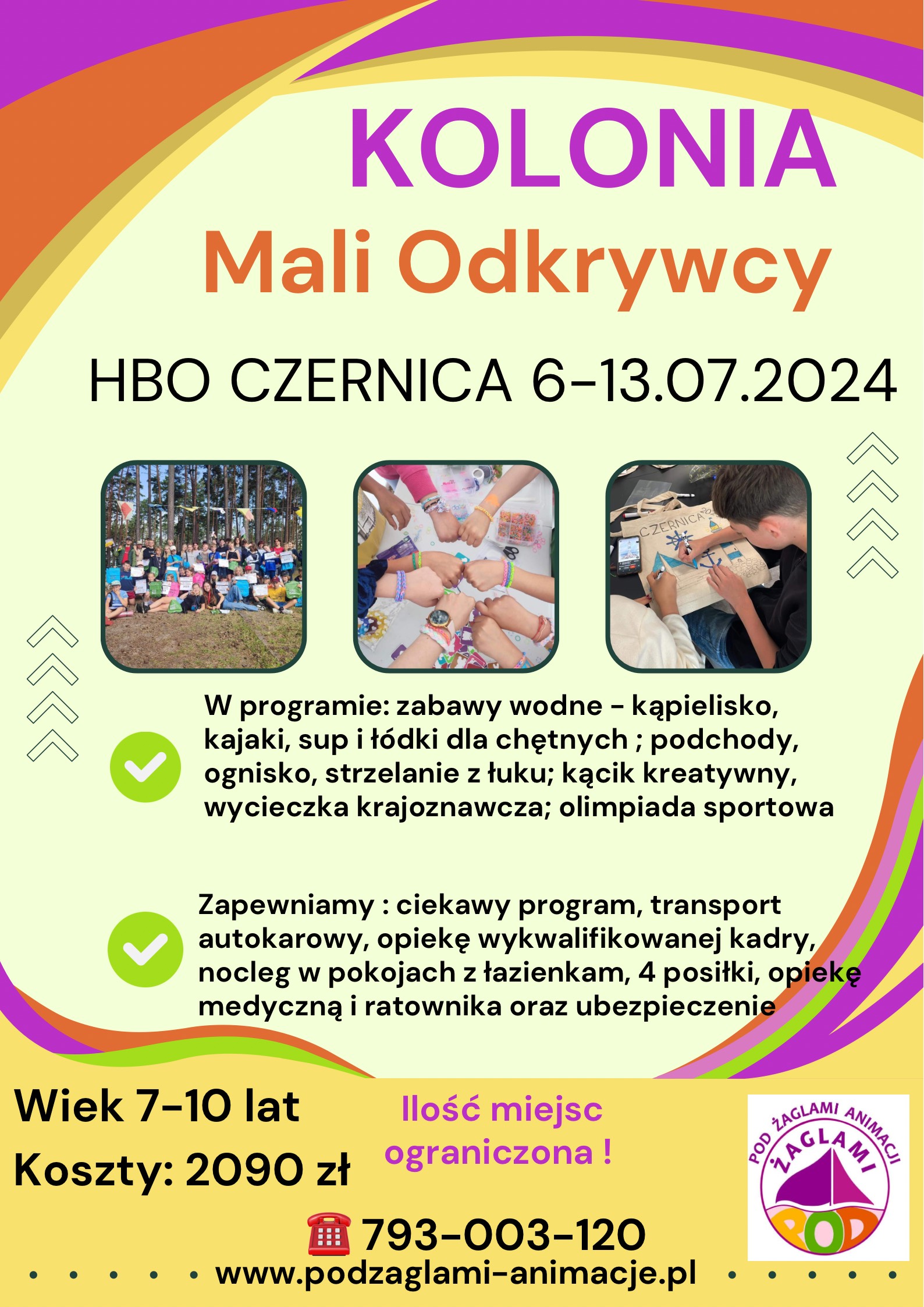 KOLONIA CZYLI… dużo fajnej zabawy bogaty program tematyczne wyjazdy dużo zabaw na świeżym powietrzu rozrywka : zabawy integracyjne, karaoke, dyskoteki woda – żeglowanie, kajaki, rowerki wodne, zabawy wodne las : mini survival, podchody, ogniska góry : wędrowanie, zdobywanie nowych szczytów, odkrywanie mała ilość uczestników – łatwość nawiązywania nowych znajomości izintegrowania grupy stała wykwalifikowana kadra stały kontakt telefoniczny relacje z każdego dnia na facebooku tylko u nas – najlepsza cena bez ukrytych kosztów ! ARCHIWALNE KOLONIE